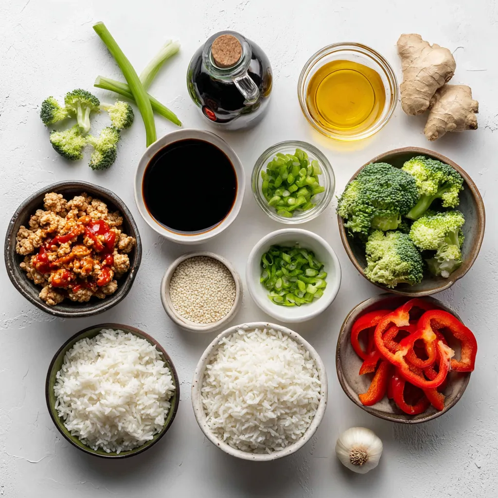 To make Bang Bang Ground Turkey Rice Bowls, you will need: