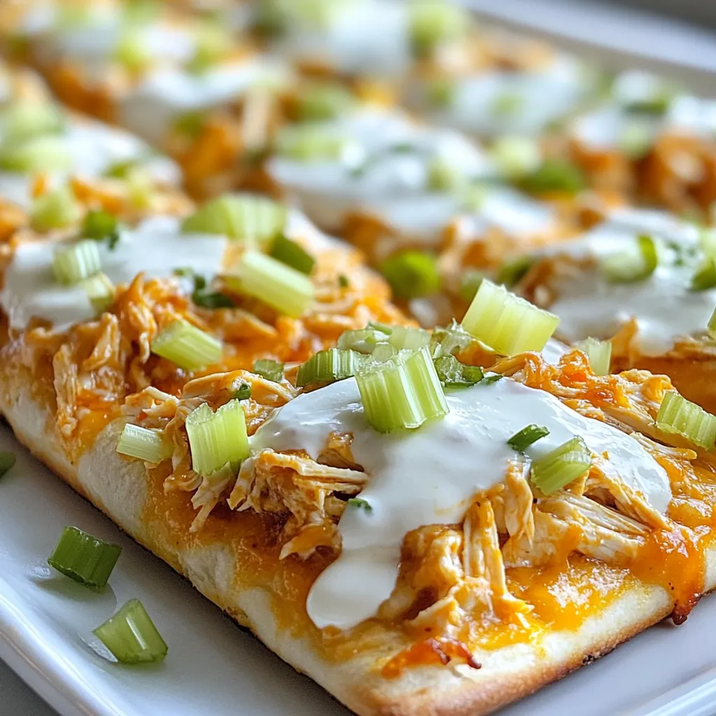– Best sides to pair with Buffalo Chicken Flatbread: This dish goes well with a fresh side salad or crunchy veggie sticks. Carrot and celery sticks bring a nice bite. You could also serve a side of sweet potato fries for a hearty touch.