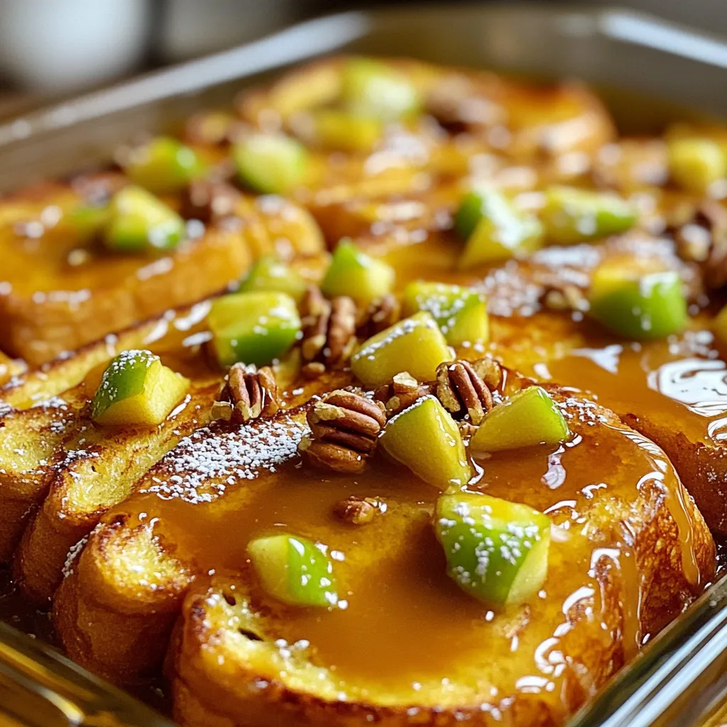 Caramel Apple French Toast Bake is a sweet casserole. It combines bread, eggs, milk, and apples. You layer the bread with caramel-coated apples and bake it all together. The result is warm, gooey, and perfect for breakfast or brunch. You can enjoy it fresh from the oven or save some for later. Similar recipes include bread pudding and other French toast bakes, but this one stands out with its caramel flavor and apple goodness.