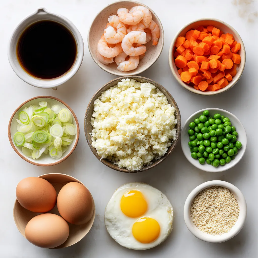 A healthy and delicious alternative to traditional fried rice, made with cauliflower and shrimp.