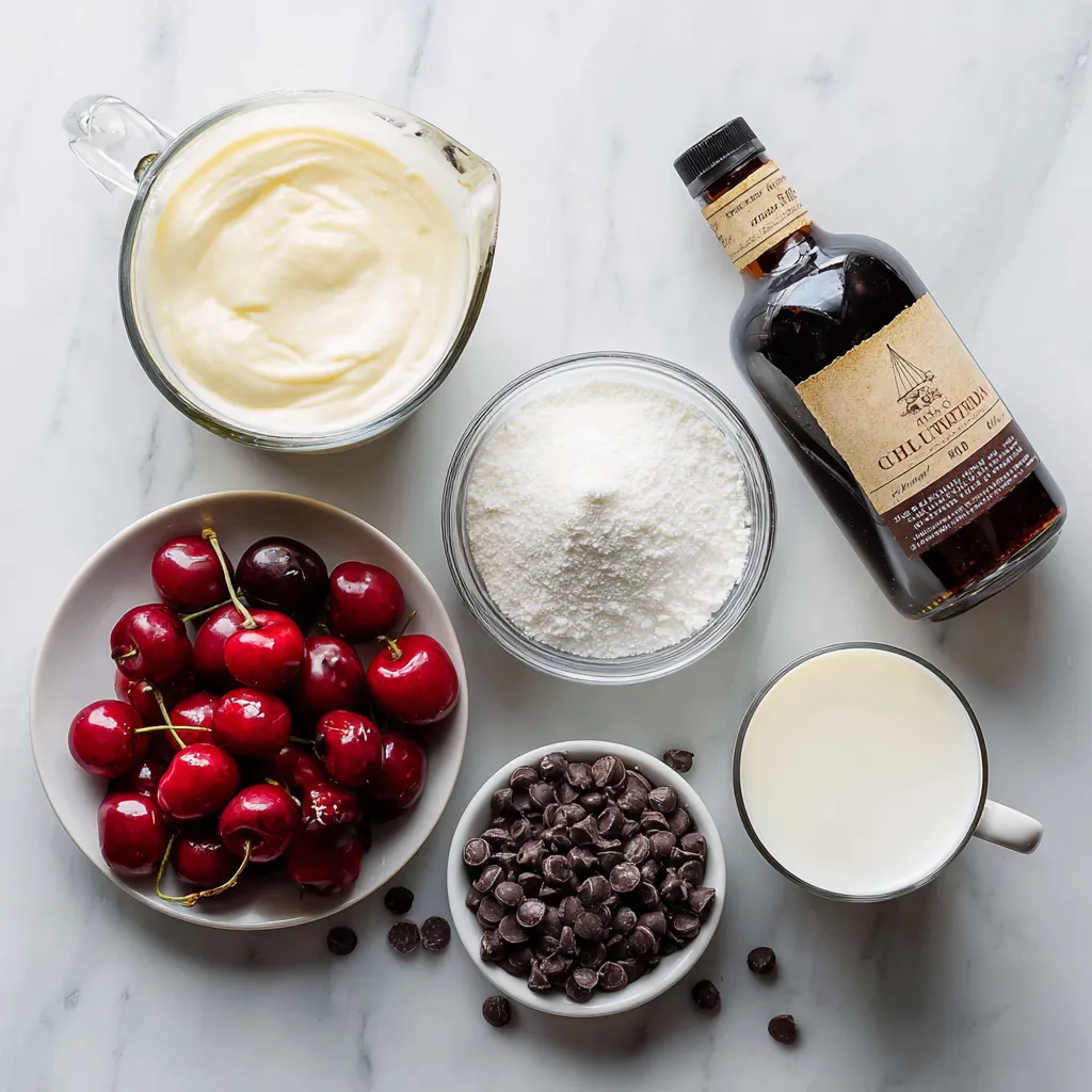 I love using heavy cream in this recipe. It makes the ice cream rich and creamy. Whole milk adds a nice balance, keeping the texture smooth. Granulated sugar is key for sweetness. It helps bring out the flavors of the cherries and vanilla.