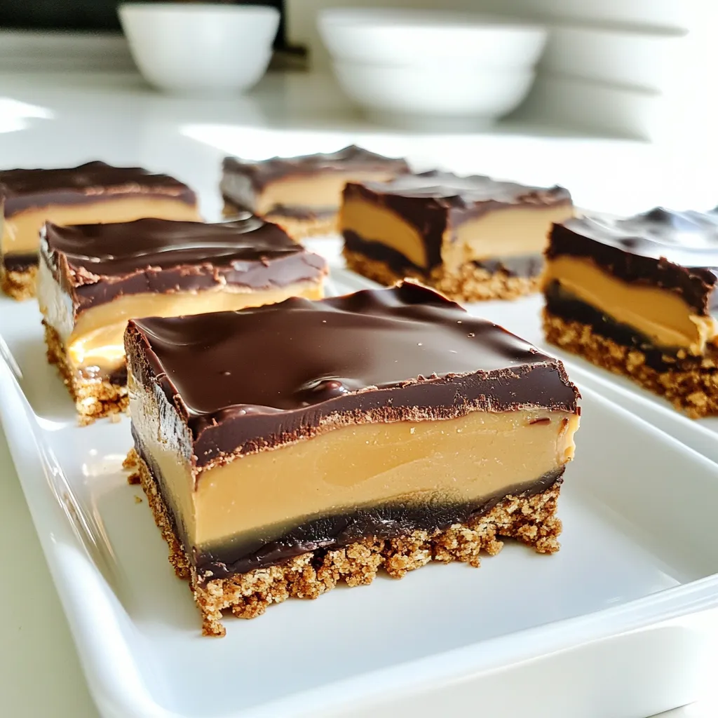 - 1 ½ cups digestive biscuits, crushed - ½ cup unsweetened cocoa powder - ½ cup melted coconut oil - 1 cup pitted dates, blended into a paste - ½ cup maple syrup - 1 cup smooth peanut butter or almond butter - 1 cup dark chocolate chips (dairy-free if needed) - 2 tablespoons coconut milk Gathering the right ingredients is key. Each item plays a role in the flavor and texture of your Chocolate Caramel Slice Bars. The digestive biscuits form a crunchy base. The cocoa powder adds a rich flavor. Melted coconut oil binds everything together. Dates provide natural sweetness, while maple syrup enhances the caramel taste. Peanut butter or almond butter gives a creamy layer. Dark chocolate chips melt into a smooth topping. Finally, coconut milk helps blend the chocolate nicely. Be sure to use quality ingredients. They can make a big difference. For a vegan option, choose dairy-free chocolate chips. If you need gluten-free, look for gluten-free biscuits. Each choice you make will impact your final treat. Enjoy the process of gathering everything. It sets the stage for a delicious treat! 1. Start by taking your crushed digestive biscuits and putting them in a big bowl. 2. Add the unsweetened cocoa powder. Mix them well with a spoon until combined. 3. Pour in the melted coconut oil. Stir until it feels like wet sand. 4. Take an 8x8 inch baking dish and press the mixture firmly into the bottom. Use a measuring cup to pack it down evenly. 1. In another bowl, blend the pitted dates into a smooth paste. 2. Add the maple syrup and nut butter to the date paste. Mix until smooth and creamy. 3. Spread this caramel mixture evenly over the biscuit base. Use a spatula to cover every inch. 1. Now, take your dark chocolate chips and coconut milk. Melt them in the microwave or a double boiler. 2. Stir often to avoid burning. You want it smooth and glossy. 3. Once melted, pour the chocolate over the caramel layer. Spread it evenly with a spatula. 1. Place the dish in the refrigerator. Let it chill for at least 2-3 hours. 2. Once set, lift the bars out using the baking paper edges. 3. Use a sharp knife to cut the bars into squares or rectangles. Enjoy your delicious creation! Keeping the coconut oil melted is key. If it cools, the mix can clump. I suggest checking the oil before you pour it in. It should feel warm and liquid. For the layers, the caramel layer should be smooth and creamy. When spreading, make sure it covers the base evenly. The chocolate should be glossy and pourable. To prevent the chocolate from burning, melt it slowly. Use the microwave in short bursts. Stir after every 30 seconds. This keeps the heat even. When you press the base mix, use a firm hand. It should feel solid, not crumbly. A good press helps the bars hold their shape. For added spice, try a pinch of cinnamon or a drop of vanilla. Both can boost the taste of the chocolate. You can also use different nut butters. Almond butter gives a nutty flavor, while sunflower seed butter is great for allergies. Each choice can change the taste in fun ways. {{image_2}} You can easily adapt this recipe to fit different diets. First, to make it gluten-free, switch out regular digestive biscuits for gluten-free ones. Many brands offer tasty gluten-free options that work well in this recipe. If you want to cut down on sugar, you can use sugar-free sweeteners. Look for sugar-free maple syrup or a similar syrup. You can also blend in more dates to keep the caramel layer sweet and sticky without added sugar. For a fun twist, try adding peppermint extract. Just a few drops can give your bars a fresh, festive flavor. This is great for holidays or special occasions. You can also mix in nuts or dried fruits. Chopped walnuts, almonds, or dried cranberries add a nice crunch and flavor. Just sprinkle them on top of the caramel layer before adding the chocolate. This gives your bars extra texture and a pop of color. Pair your chocolate caramel slice bars with a scoop of ice cream. Vanilla or coconut ice cream complements the rich flavors well. You can also serve them with fresh fruit, like berries or banana slices, for a bright contrast. When you present these bars at gatherings, think about creative ways to showcase them. You can cut them into fun shapes or stack them in a clear jar. Adding a sprinkle of sea salt on top before serving makes them look fancy and adds a tasty contrast. To keep your chocolate caramel slice bars fresh, store them in the fridge. Use an airtight container to prevent them from drying out. Place a piece of parchment paper between layers if you stack them. This helps maintain their shape and keeps the layers intact. If you want to freeze the slices, wrap each bar in plastic wrap. Then place them in a freezer bag or an airtight container. This method prevents freezer burn and keeps them tasty. When you're ready to enjoy, let them thaw in the fridge for a few hours. In the fridge, these bars last about one week. You can enjoy their rich flavors for days! If you freeze them, they can stay good for up to three months. Just remember to label your container with the date. This way, you can track how long they’ve been stored. Yes, you can use other biscuits. Try graham crackers or gingersnap cookies. They both add unique flavors. If you want a gluten-free option, use gluten-free biscuits or almond flour. Each choice changes the taste and texture. To make this recipe vegan, swap honey with maple syrup. For the dairy ingredients, use dairy-free chocolate chips. You can also use nut butter made from nuts only. This keeps it creamy and delicious. Yes, you can. Use other oils like vegetable or canola oil. You could also try nut butter, which adds flavor and binds well. Just ensure the fat is liquid when mixed. Use a sharp knife for clean cuts. Warm the knife under hot water for easier slicing. Always cut when the bars are cold to keep them firm. Cut them into squares or rectangles based on your preference. Absolutely! Get creative with topping