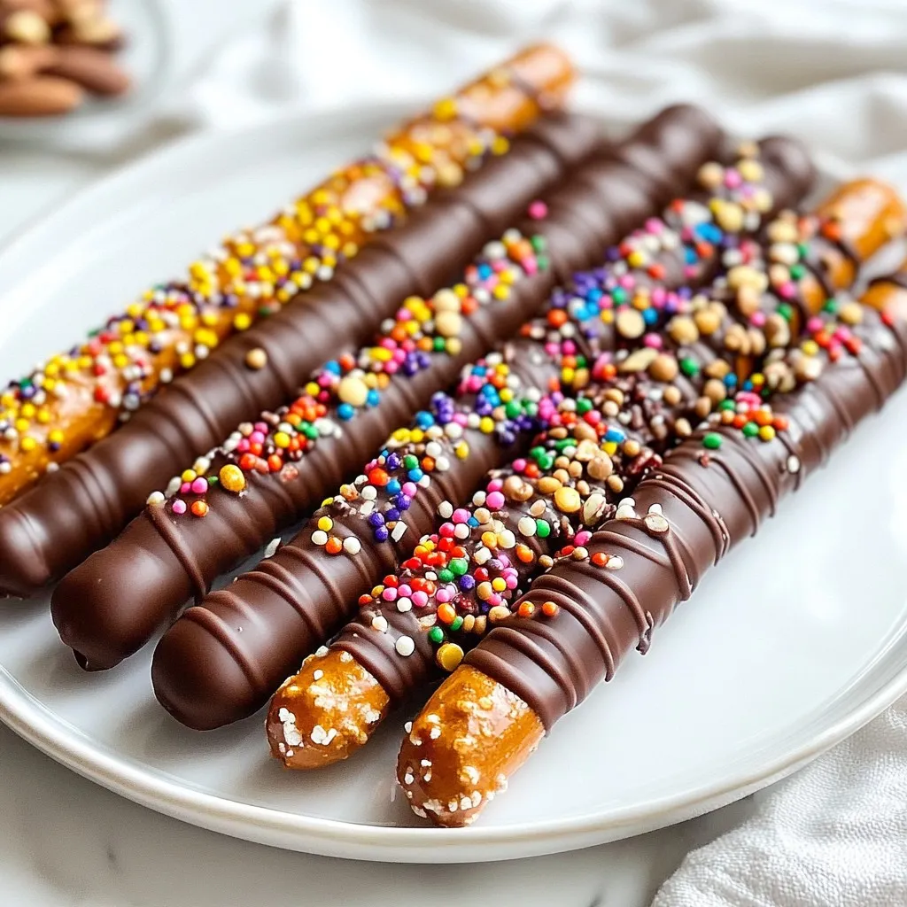 You can also substitute toppings for healthier options. Instead of sprinkles, try chopped nuts or dried fruits. These add crunch and flavor while being better for you. Your chocolate-covered pretzel rods can be both fun and nutritious.