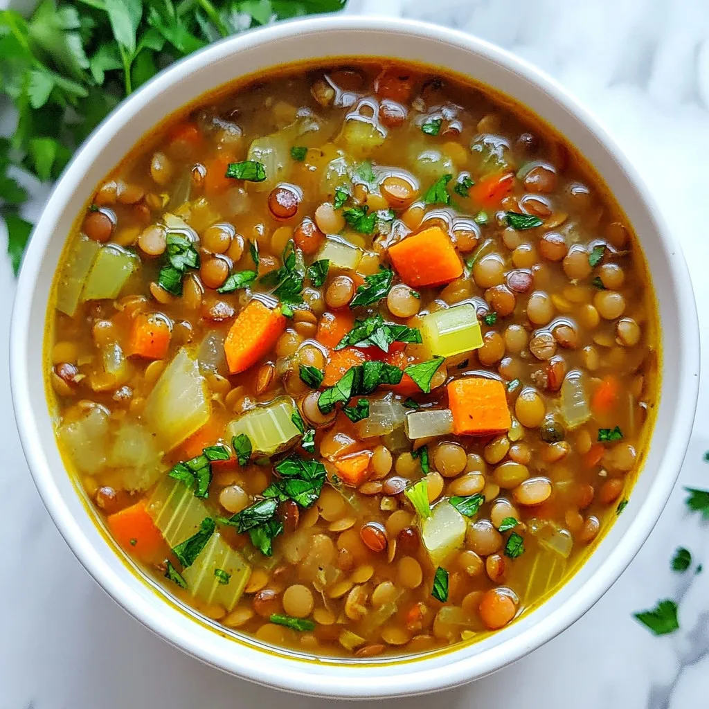 A comforting and nutritious lentil soup packed with vegetables and flavor.