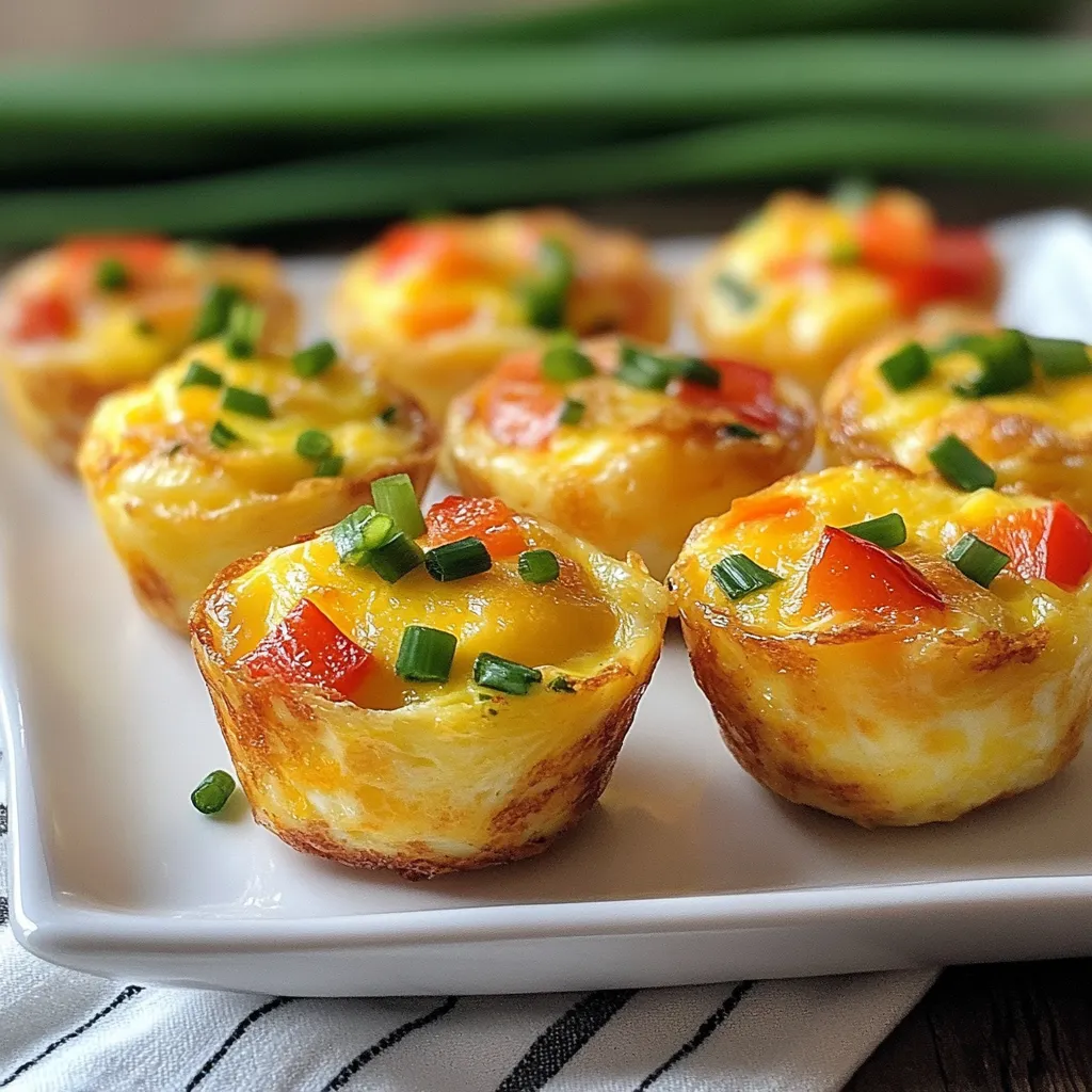 To make these tasty egg bites, you need: - 6 large eggs - 1/2 cup cottage cheese - 1 cup shredded cheddar cheese (or cheese of your choice) - 1/2 cup diced bell peppers (red, yellow, or a mix) - 1/4 cup finely chopped green onion - 1/4 teaspoon garlic powder - Salt and pepper to taste - Non-stick cooking spray or silicone molds These ingredients create a creamy and flavorful base. The eggs and cottage cheese provide protein while making them light. The cheddar cheese adds a rich taste that you will love. Bell peppers give a nice crunch and color. Green onions add a fresh kick. Garlic powder brings depth to the flavor. You can boost the flavor with: - Spinach or kale for added greens - Crumbled feta or goat cheese for a tangy twist - Cooked bacon or sausage for a heartier bite - Fresh herbs like basil or cilantro for a fresh touch These extras allow you to customize your egg bites. Feel free to mix and match to find your favorite combination. If you lack an ingredient, here are some swaps: - Use Greek yogurt instead of cottage cheese for creaminess. - Substitute mozzarella for cheddar if you prefer a milder taste. - Try different veggies like mushrooms or zucchini depending on what you have. - Egg whites can replace whole eggs for a lighter option. These swaps keep the recipe flexible. You can still achieve delicious egg bites with what you have on hand. {{ingredient_image_1}} Start by setting your oven to 325°F (163°C). This is the perfect temperature for baking egg bites. If you use silicone molds, place them in a muffin tin. This gives them support and helps them stay upright while baking. Next, grab your blender. Add the following ingredients: - 6 large eggs - 1/2 cup cottage cheese - 1 cup shredded cheddar cheese - 1/4 teaspoon garlic powder - Salt and pepper to taste Blend everything until smooth. This makes a creamy base for your egg bites. Now, take a mixing bowl. Add: - 1/2 cup diced bell peppers - 1/4 cup finely chopped green onion Stir the veggies well. This adds color and flavor to your egg bites. It's time to combine the two mixtures. Pour the egg blend into the bowl with the vegetables. Mix gently so the veggies spread evenly. Lightly spray your silicone molds or muffin tin with cooking spray. This helps the egg bites pop out easily later. Fill each mold about 3/4 full with the mixture. Carefully place the molds in the oven. Bake for 25-30 minutes. The egg bites should be set and golden at the edges when done. Once baked, take them out of the oven. Let the egg bites cool for a few minutes. Gently run a knife around the edges to loosen them. Pop them out of the molds. Serve warm on a colorful plate. You can add fresh herbs like chives or parsley for a fun touch. Enjoy them right away or let them cool completely for later! To make your egg bites creamy, use fresh eggs and cottage cheese. Blend them well. This helps to break down the cottage cheese. Aim for a smooth texture. If you like fluffier bites, add a splash of milk. Avoid overmixing to keep air in the batter. This keeps the bites light and airy. To keep your egg bites fresh, store them in an airtight container. You can keep them in the fridge for up to five days. If you want to save them longer, freeze the bites. Place them in a freezer-safe bag. They can last for up to three months. Label the bag with the date to track freshness. When you’re ready to eat, you can reheat your egg bites easily. Use the microwave for quick warming. Heat them for 30 seconds, then check if they are warm. If not, heat in 15-second bursts. You can also use the oven. Preheat it to 350°F (175°C) and warm for about 10-15 minutes. This way, they stay moist and tasty. Pro Tips Use Fresh Ingredients: For the best flavor, opt for fresh vegetables and high-quality cheese. Experiment with Cheese: Feel free to mix different types of cheese for a unique taste—try feta, mozzarella, or pepper jack! Storage Tips: Store leftovers in an airtight container in the fridge for up to 5 days, or freeze them for longer storage. Customize Your Fillings: Get creative by adding cooked meats like bacon or sausage, or other veggies like spinach or mushrooms. {{image_2}} You can add protein to your egg bites for more flavor. Chopped ham or crispy bacon works well. Just add about 1/2 cup of your chosen meat. This change makes the bites heartier and even more filling. Cheese adds creaminess and flavor. While I use cheddar in the base recipe, feel free to get creative. Try mozzarella for a stretchier texture or feta for a tangy kick. Use 1 cup of cheese in total, mixing and matching as you like. Vegetables add color and nutrition. Bell peppers are great, but you can try spinach, mushrooms, or zucchini. Diced tomatoes or roasted red peppers also work well. Aim for about 1/2 cup of mixed veggies. This way, your egg bites stay tasty and vibrant. To keep your egg bites fresh, store them in an airtight container. This helps prevent them from drying out or absorbing other odors in the fridge. Place a paper towel between the egg bites and the lid to absorb extra moisture. This keeps them fluffy and tasty. You can freeze your egg bites for up to three months. To do this, let them cool completely. Then, wrap each egg bite in plastic wrap. Place them in a freezer-safe bag or container. Label the bag with the date. When you're ready to eat, thaw them overnight in the fridge. In the fridge, these egg bites last for about four to five days. If you freeze them, they can last up to three months. Always check for any signs of spoilage before eating. If they smell off or look strange, it's best to toss them. Enjoy your egg bites fresh! Yes, you can make these egg bites ahead of time. They store well in the fridge. Just prepare them, bake, and let them cool. After cooling, place them in an airtight container. They stay fresh for about four days. For meal prep, this is a great option. To reheat, use the microwave for best results. Place one or two egg bites on a plate. Heat them on hi