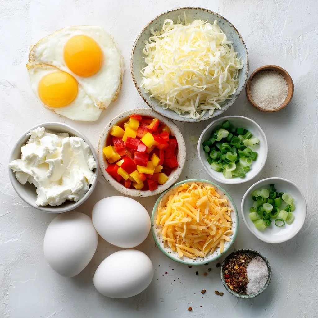 These ingredients create a creamy and flavorful base. The eggs and cottage cheese provide protein while making them light. The cheddar cheese adds a rich taste that you will love. Bell peppers give a nice crunch and color. Green onions add a fresh kick. Garlic powder brings depth to the flavor.