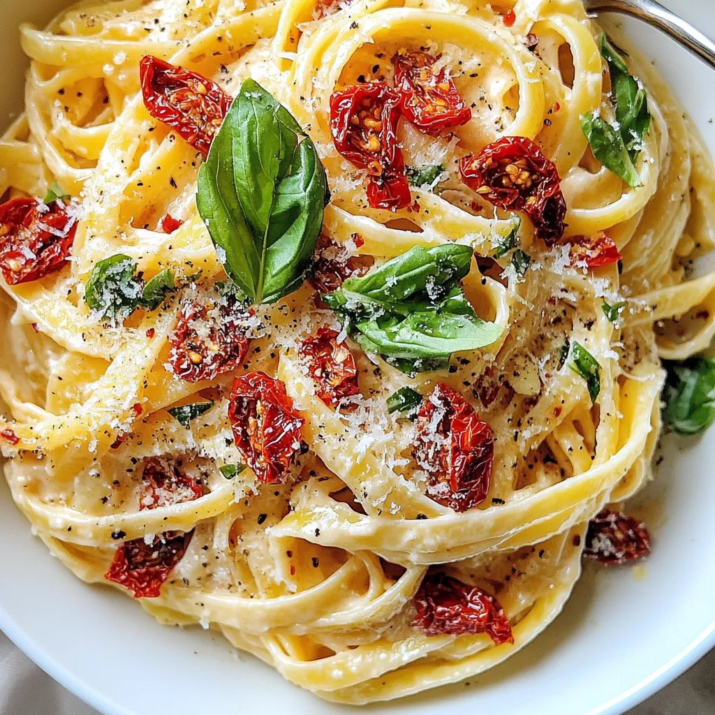 The main ingredients in this dish make it truly special. I love using spaghetti or fettuccine for this recipe. Both types hold the creamy sauce well. The sun-dried tomatoes add a burst of flavor. I prefer the kind packed in oil. This adds extra taste to the dish.
