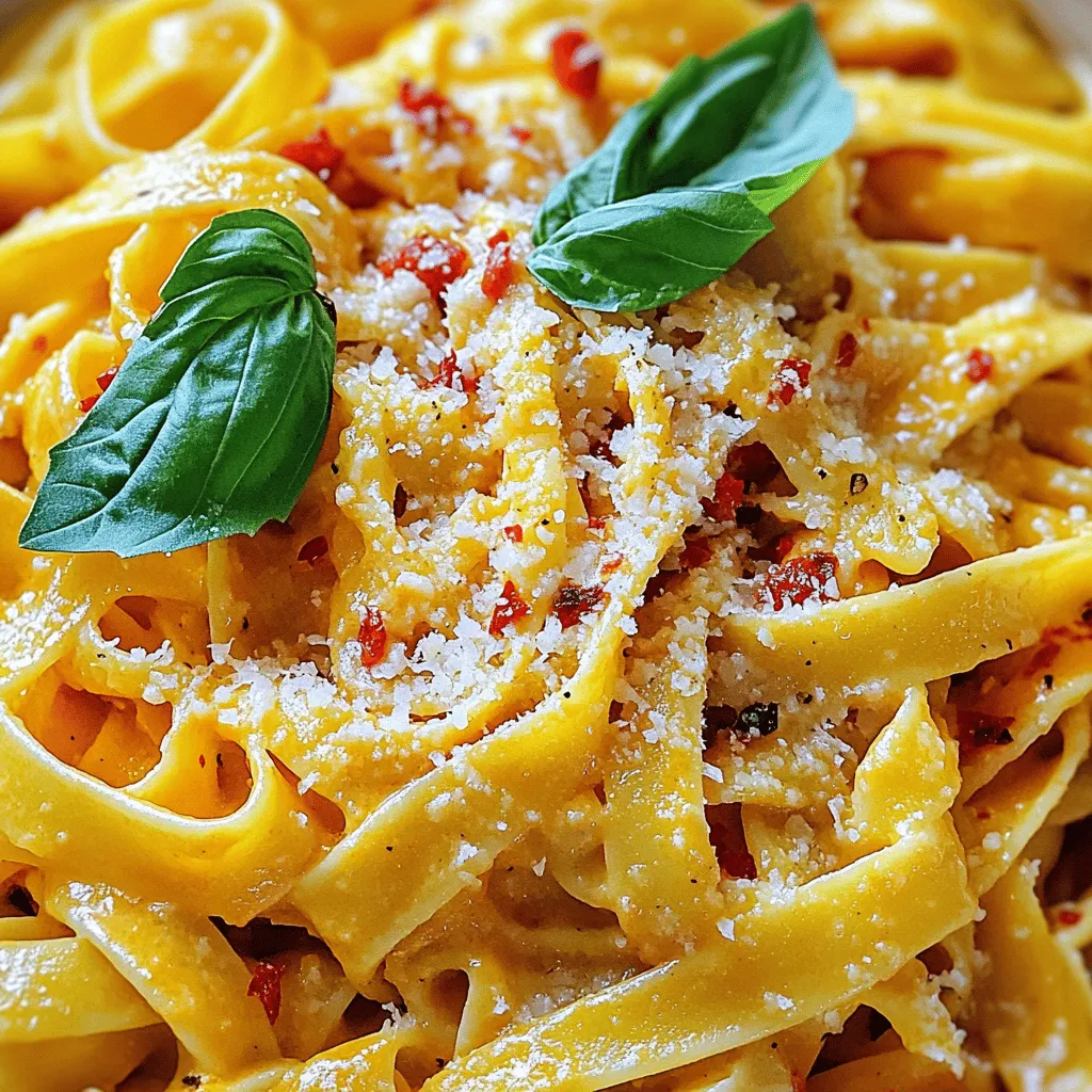 To make your creamy roasted red pepper pasta even better, consider adding spices. A pinch of smoked paprika or a dash of Italian herbs can elevate the taste. You can also try adding a splash of lemon juice for brightness. If you want protein, grilled chicken or shrimp pairs nicely with this dish. Both options add texture and flavor that complements the creamy sauce.