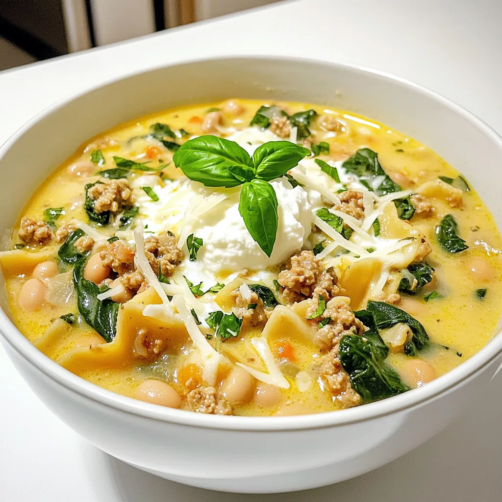To make the best creamy white lasagna soup, start with fresh ingredients. Use high-quality ground chicken or turkey for great flavor. Make sure to sauté the onion until it is soft. This step adds a sweet touch. When cooking the garlic, be careful not to burn it. A few minutes is all it needs. Stir the noodles in the broth until they are just right. Overcooked noodles can turn mushy. Finally, let the soup simmer gently after adding the cream. This step helps blend all the flavors.