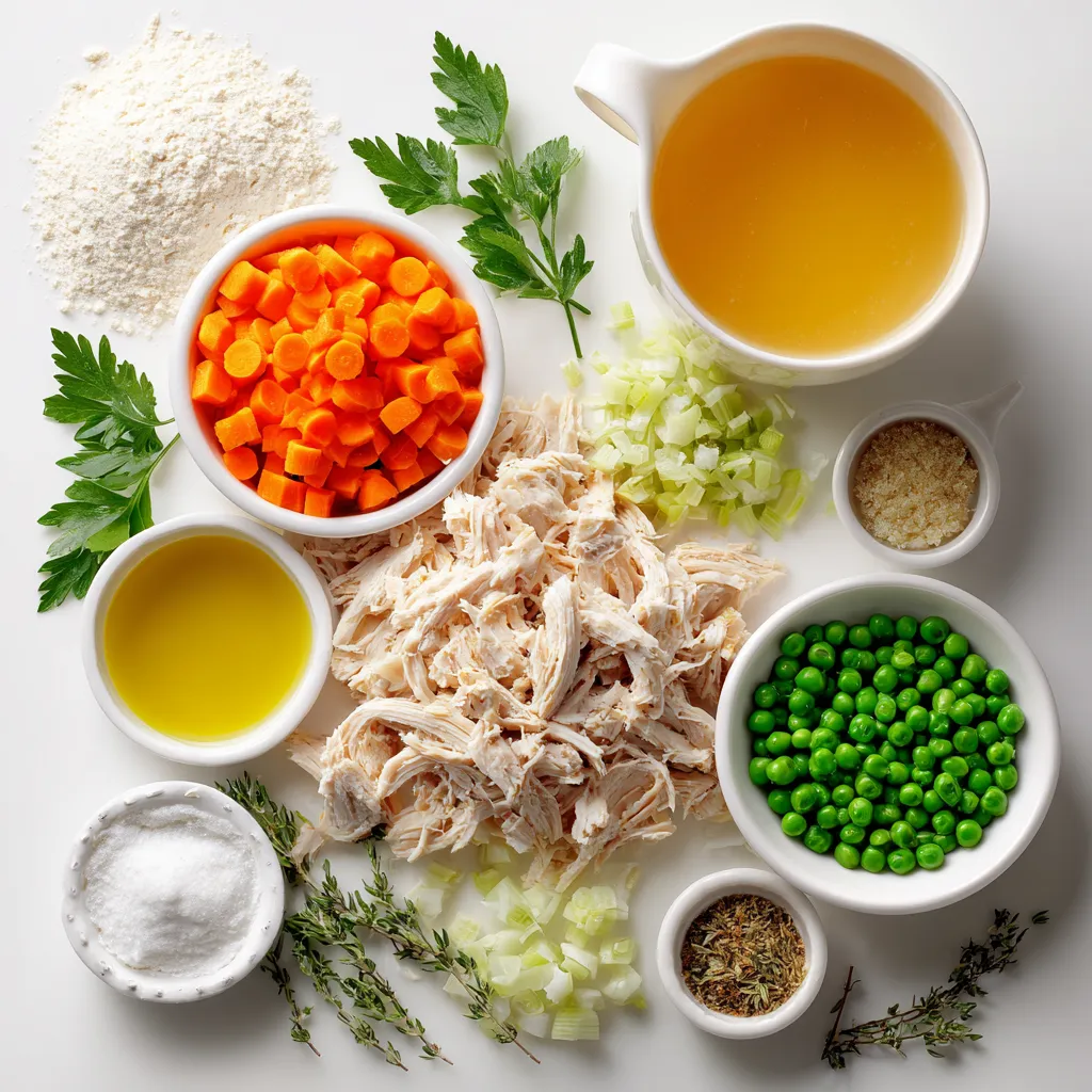 To make a delicious crustless chicken pot pie, you need these main ingredients: