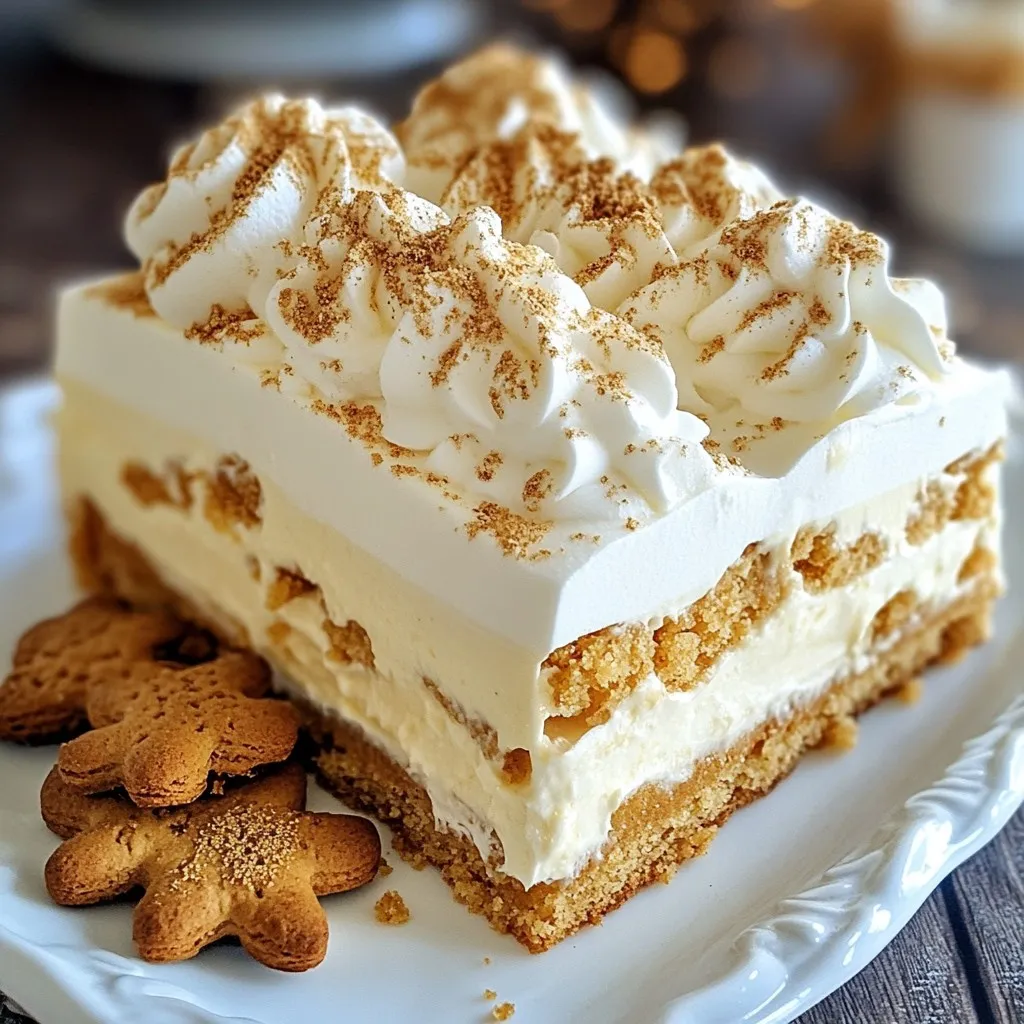 One common mistake is soaking the graham crackers too long in eggnog. They should be moist but not soggy. If they are too wet, your cake will fall apart. Another mistake is skipping the chilling time. The longer it chills, the better the flavors blend. Finally, don’t forget to garnish! The gingerbread cookies and nutmeg add a nice touch.