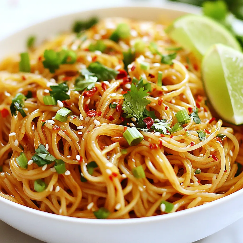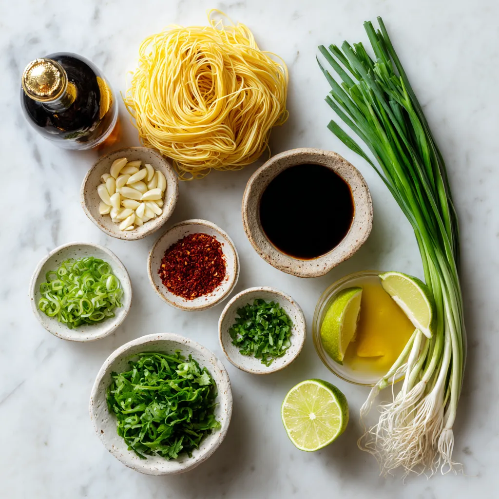 Using these fresh ingredients makes the dish vibrant and full of flavor. The noodles are the base, while garlic and spring onions add warmth and brightness. Olive oil brings richness, and soy and sesame oil give it that umami kick. The chili flakes add just the right amount of heat. Don’t forget the lime; it adds a refreshing zing!