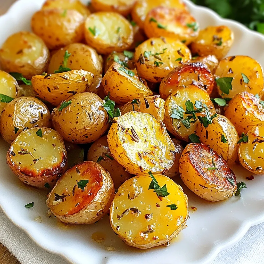 Deliciously roasted baby potatoes infused with garlic and herbs.