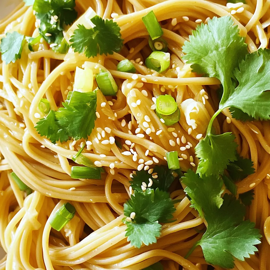 These noodles shine on their own, but you can boost them with toppings. Sprinkle extra sesame seeds on top for crunch. Add more chopped green onions for freshness. A handful of fresh cilantro adds a bright flavor. Try serving the noodles with grilled chicken or sautéed veggies for a complete meal. They also pair well with a side of steamed broccoli or a fresh salad. Enjoy your delicious creation!