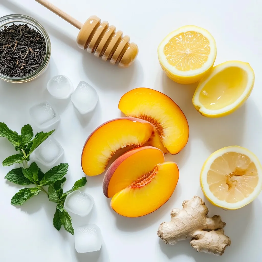 To make Ginger Peach Iced Tea, you need simple, fresh ingredients. Here’s what you’ll need: