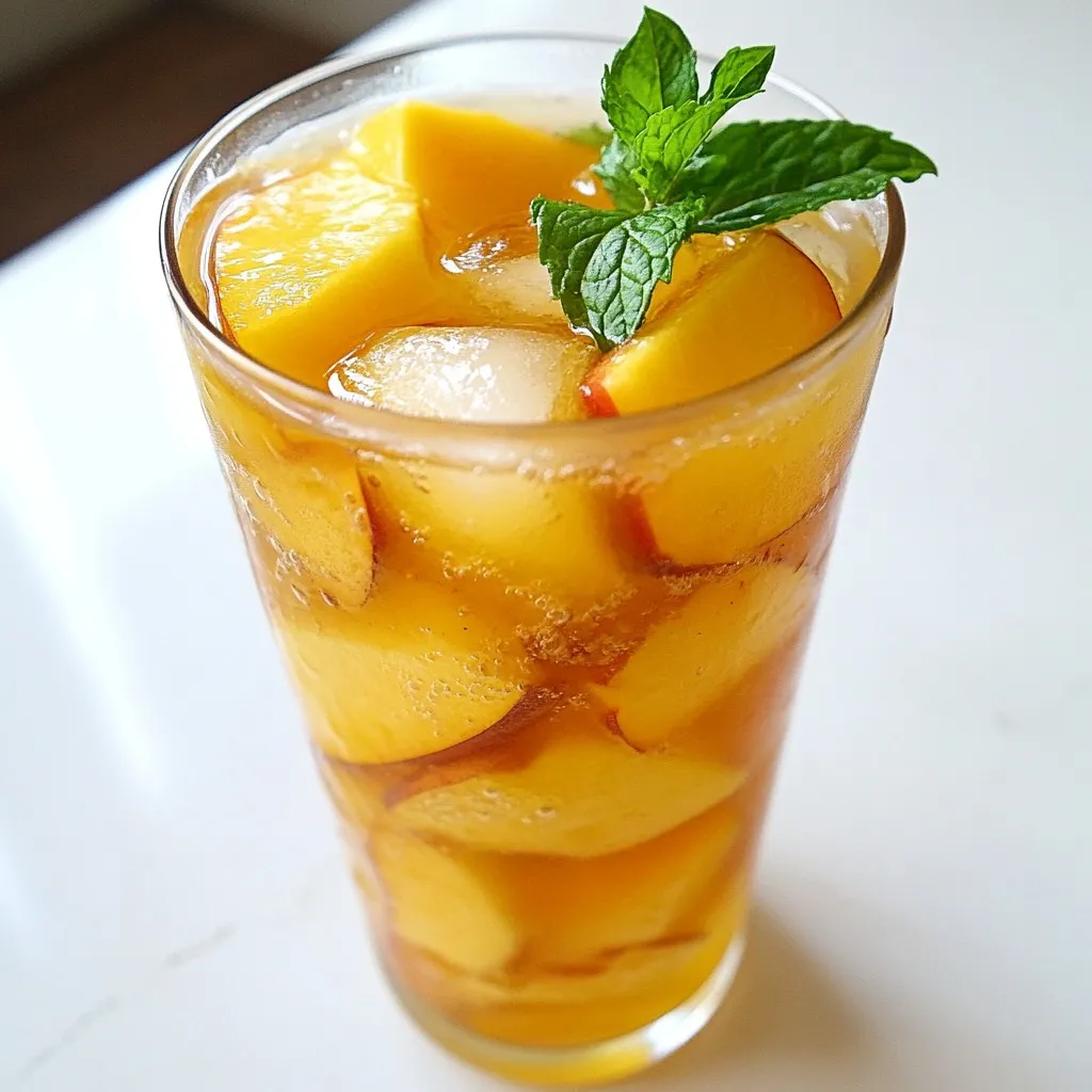 Next, allow the tea to cool to room temperature. Then, refrigerate it for at least 1 hour. This chilling step makes the drink refreshing. Once chilled, fill your glasses with ice cubes. Pour the tea over the ice. Finally, add sliced peaches to each glass. If you like, garnish with fresh mint. This drink is a treat!