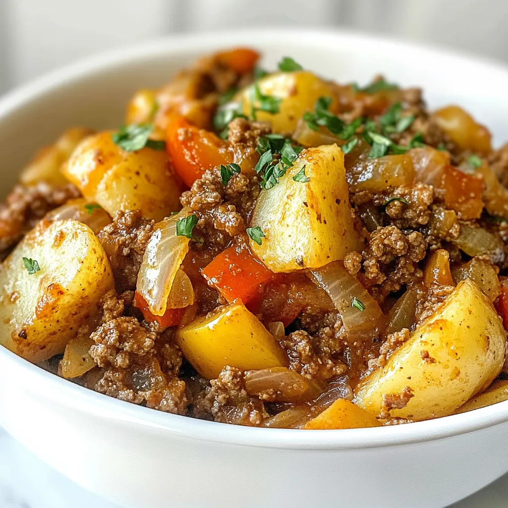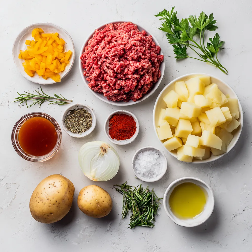 A comforting dish featuring ground beef, diced potatoes, and a blend of spices.