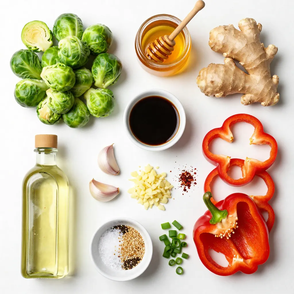 The first step in making this dish is gathering your ingredients. Start with fresh Brussels sprouts. Look for ones that are bright and firm. Halving them helps them cook evenly and soak up flavors. Next, honey and soy sauce create a sweet and savory base.