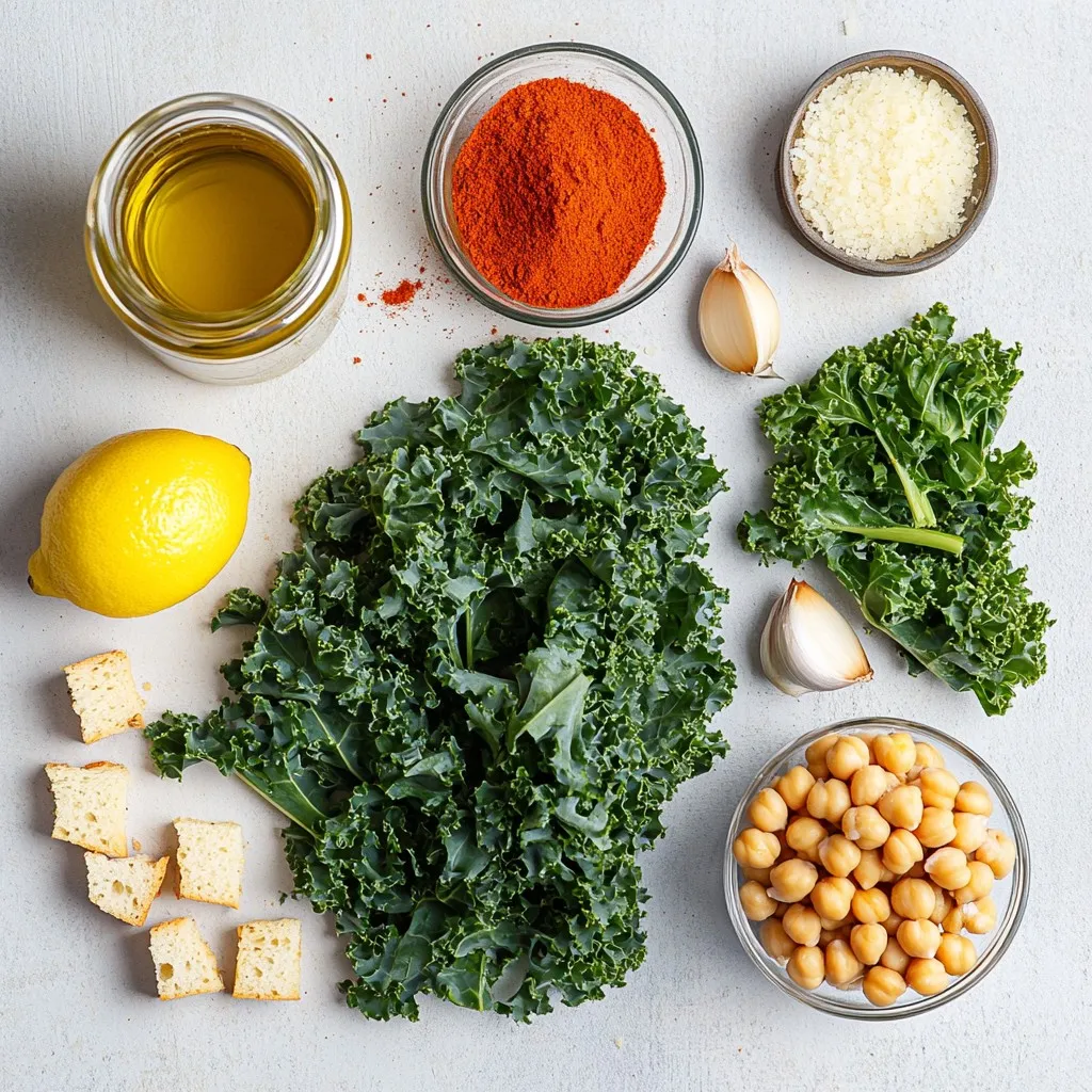 To make this Kale Caesar Salad with Crispy Chickpeas, you need: