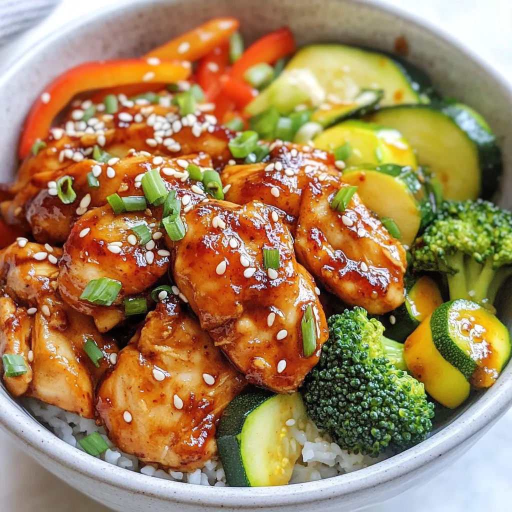 Next, add your vegetables. Toss in 1 sliced bell pepper, 1 small sliced zucchini, and 1 cup of broccoli florets. Stir-fry the veggies with the chicken for about 3 to 4 minutes. You want them to be tender but still crisp. After that, pour in the leftover marinade. Cook for another 2 minutes to let the flavors blend. Season with salt and pepper to taste. Finally, remove the skillet from the heat and mix in 3 chopped green onions. Serve hot and sprinkle sesame seeds on top for a fun finish.