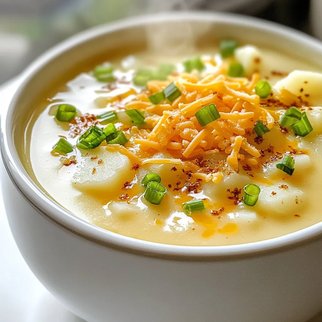 Keyword cheddar, creamy, potato, soup, vegetarian