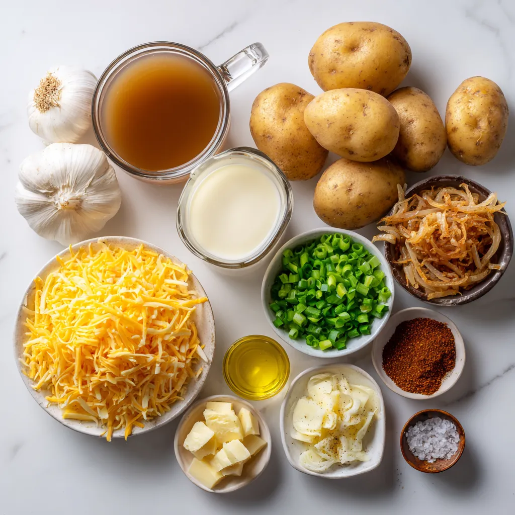 The main ingredients create the heart of the soup. The russet potatoes give it a creamy texture. Onions and garlic add depth and flavor. Vegetable broth forms the base, while heavy cream makes it rich.