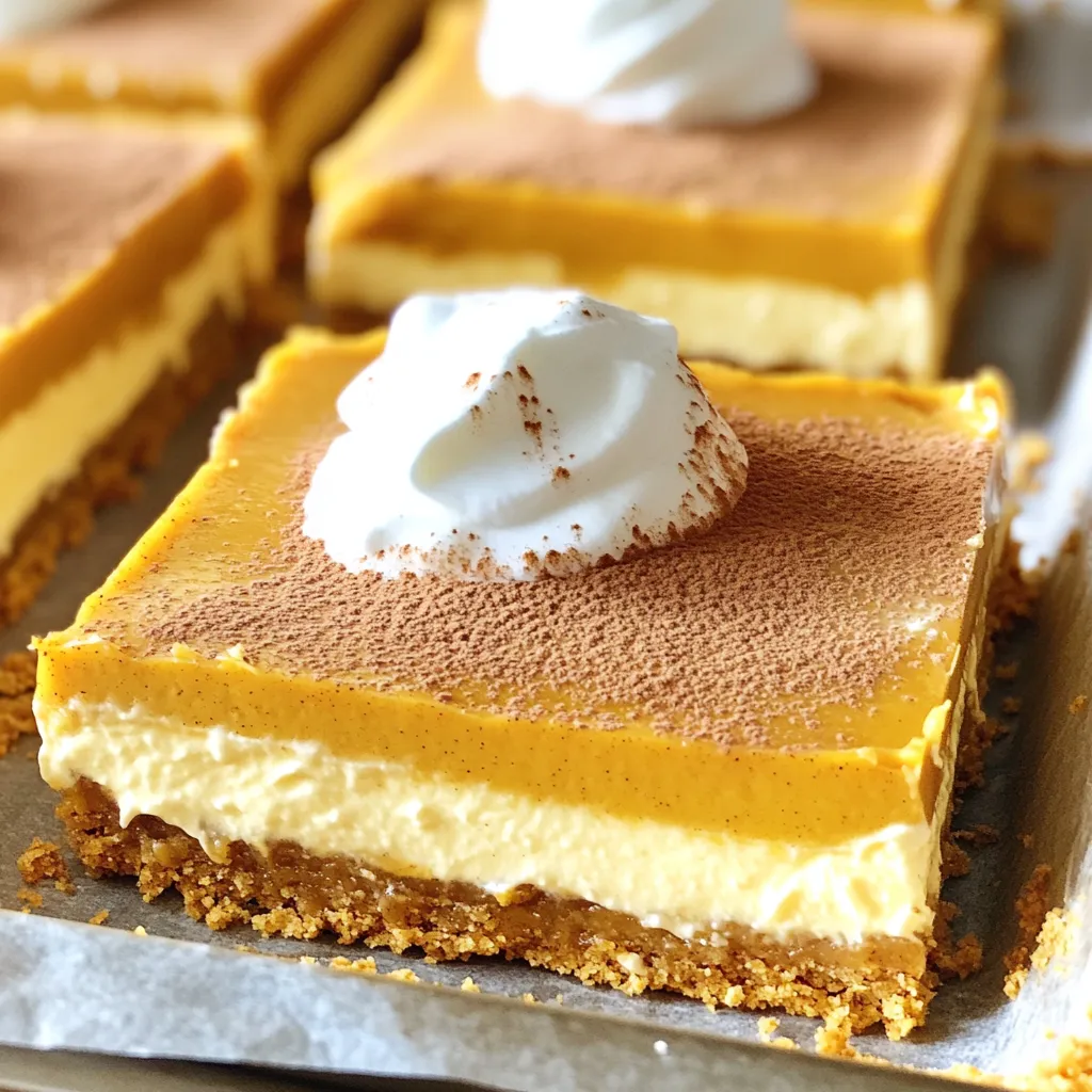 For these bars, the crust is a key part. I use graham cracker crumbs to give it a nice crunch. Melted unsalted butter helps bind the crumbs together. Granulated sugar adds sweetness to the crust and filling. Cream cheese is the base of the filling, giving it that rich, creamy texture. Pumpkin puree brings in that classic pumpkin flavor, making it perfect for fall.