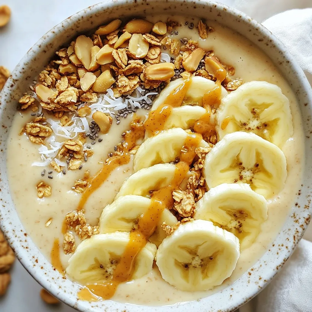 - 2 ripe bananas, frozen - 1/2 cup unsweetened almond milk - 3 tablespoons creamy peanut butter - 1 tablespoon honey or maple syrup (optional) - 1/4 teaspoon vanilla extract - 1/4 teaspoon cinnamon To make a great Peanut Butter Banana Smoothie Bowl, start with ripe bananas. They add a natural sweetness. Frozen bananas give the smoothie a thick and creamy texture. Next, pour in unsweetened almond milk. You can use any milk you like. Creamy peanut butter adds richness and flavor. It’s the star of this bowl! If you want extra sweetness, add honey or maple syrup. A hint of vanilla extract and a sprinkle of cinnamon boosts the flavor. - Sliced bananas - Granola - Chopped nuts - Chia seeds - Shredded coconut - Extra peanut butter drizzle Toppings make the smoothie bowl fun and tasty. You can add sliced bananas for freshness. Granola adds a nice crunch. Chopped nuts give it a healthy twist. Chia seeds offer extra fiber and nutrition. Shredded coconut adds a tropical touch. Don’t forget a drizzle of extra peanut butter for more flavor! Mix and match these toppings to suit your taste. {{ingredient_image_1}} First, gather your ingredients. You need frozen bananas, almond milk, peanut butter, honey or maple syrup, vanilla extract, and cinnamon. Next, add all the ingredients to your blender. I like to start with the almond milk, as it helps the blades move easily. Then, toss in the frozen bananas. After that, add the peanut butter, honey or maple syrup, vanilla, and cinnamon. Blend everything on high speed until it's smooth and creamy. You may need to stop and scrape the sides to mix well. This ensures every bit gets blended. After your smoothie is smooth, pour it into a bowl. This is where you can get creative! Now for the fun part: adding toppings. You can use sliced bananas, granola, chopped nuts, chia seeds, or shredded coconut. Arrange them nicely on top. For an extra treat, drizzle some more peanut butter on top. This adds flavor and looks great! Serve your smoothie bowl right away for the best taste. You can add a few garnishes, like extra banana slices or a sprinkle of cinnamon, if you like. Pair this bowl with a side of toast or some yogurt. This makes a filling breakfast or snack. Enjoy the tasty mix of flavors! To get a smooth and creamy texture, use frozen bananas. They make the smoothie cold and thick. When blending, start on low speed. Gradually increase to high speed. This helps mix everything well. If your smoothie is too thick, add more almond milk. Just a splash will do. If it’s too thin, add more frozen bananas. When it comes to sweetness, pick your favorite sweetener. Honey or maple syrup works great. You can try agave nectar too. If your bananas are very ripe, you might not need extra sweetener. Taste your smoothie before adding more. Adjust the sweetness to your liking. This balance brings out the banana and peanut butter flavors. To make your smoothie bowl look great, arrange the toppings nicely. Start with sliced bananas in a circle. Next, sprinkle granola evenly on top. Add chopped nuts and chia seeds for texture. Finish with shredded coconut. A drizzle of extra peanut butter adds both flavor and style. Use colorful ingredients for a fun look. This makes your bowl more inviting and appetizing. Pro Tips Use Ripe Bananas: The riper the bananas, the sweeter your smoothie bowl will be. Look for bananas with brown spots for optimal flavor. Customize Your Milk: Feel free to substitute almond milk with any milk of your choice. Coconut milk adds a creamy texture, while oat milk gives a slight sweetness. Experiment with Toppings: Get creative with your toppings! Try different nuts, seeds, or even fresh berries to add color and nutrition. Make it Ahead: For a quick breakfast, prep your smoothie mixture the night before and store it in the fridge. Just blend in the morning for a fast and nutritious meal. {{image_2}} You can switch up the base of your smoothie bowl. If you want a dairy-free option, try coconut milk instead of almond milk. For nut-free choices, use oat milk or soy milk. You can also mix in other fruits. Berries, mangoes, or even spinach can add a fun twist to your bowl. Want to boost the nutrition? Adding superfoods can help! Consider mixing in a tablespoon of chia seeds or flaxseeds. These will give your bowl an extra health kick. You can also add spices for flavor. A pinch of nutmeg or a hint of ginger can make your smoothie bowl unique and tasty. Fresh fruits make great toppings! In summer, use berries or peaches. In fall, try apples or pears. You can also have fun with themed toppings for holidays. For Halloween, use orange slices or black sesame seeds. For Christmas, sprinkle some pomegranate seeds for a festive touch. You can store leftovers of your smoothie bowl in the fridge. Use an airtight container. It stays fresh for up to two days. If you want to freeze it, pour the smoothie into ice cube trays. This way, it keeps well for about three months. When ready to use, blend the cubes with a bit of milk. If you have extra ingredients, feel free to get creative! You can add leftover smoothie to your regular smoothies. It adds flavor and nutrition. For the toppings, use any extras in yogurt or oatmeal. They make great snacks and add crunch and taste. Yes, you can use fresh bananas. However, frozen bananas give a creamier texture. They also keep your smoothie bowl cold. If you use fresh bananas, add some ice to chill it. A smoothie bowl can last about one day in the fridge. Store it in an airtight container. The toppings may get soggy, so add them fresh when you eat. Yes, this smoothie bowl is great for meal prep. You can blend the base and store it. Just add toppings right before eating for the best taste and texture. You can use any milk you like. Options include cow’s milk, soy milk, or oat milk. Each milk gives a different taste, so choose what you enjoy most. To make this recipe vegan, use maple syrup instead of honey. Also, choose plant-based milk. All th