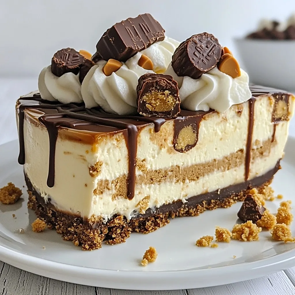 Garnishing makes your cheesecake shine. Add extra mini peanut butter cups on top. Drizzle chocolate sauce over the cheesecake for a rich look. A sprinkle of crushed graham crackers adds texture.
