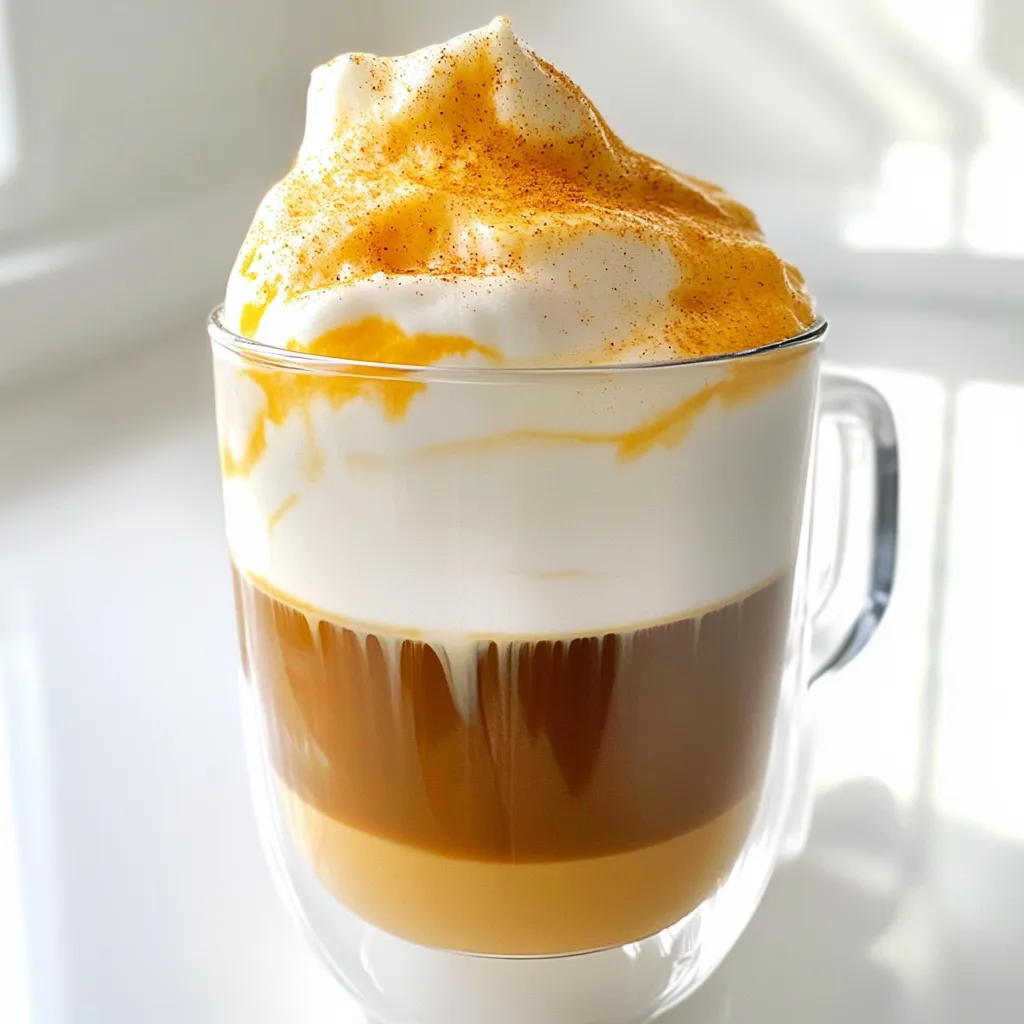 Add the Foam: Gently spoon the pumpkin cream foam over the milk-coffee mixture until it overflows slightly, creating a layered effect.