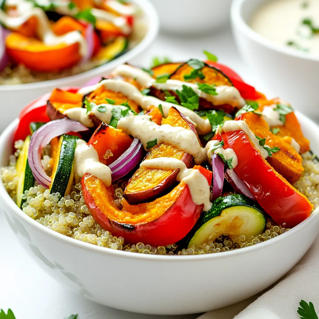 Experience the deliciousness of Roasted Veggie Grain Bowls with Maple Tahini! This recipe is a perfect blend of quinoa, sweet potatoes, and colorful veggies, topped with a creamy maple tahini sauce that will delight your taste buds. Ideal for meal prep or a cozy dinner, these bowls are healthy and satisfying. Click through for the full recipe and enjoy a burst of flavors! #GrainBowls #HealthyRecipes #VeggieMeals #MealPrepIdeas