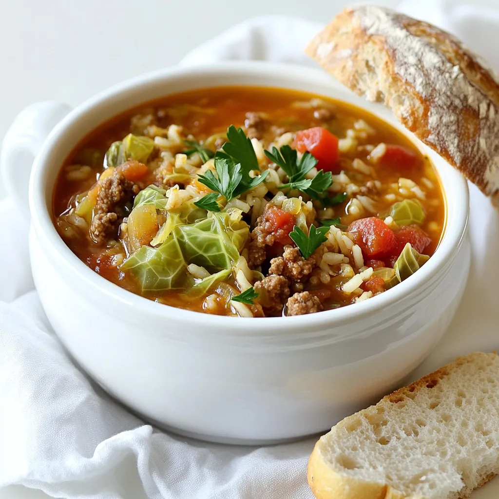 This soup is packed with nutrients. Cabbage is high in fiber and vitamins. The ground beef adds protein, while brown rice gives you energy. It’s a comforting and healthy meal.
