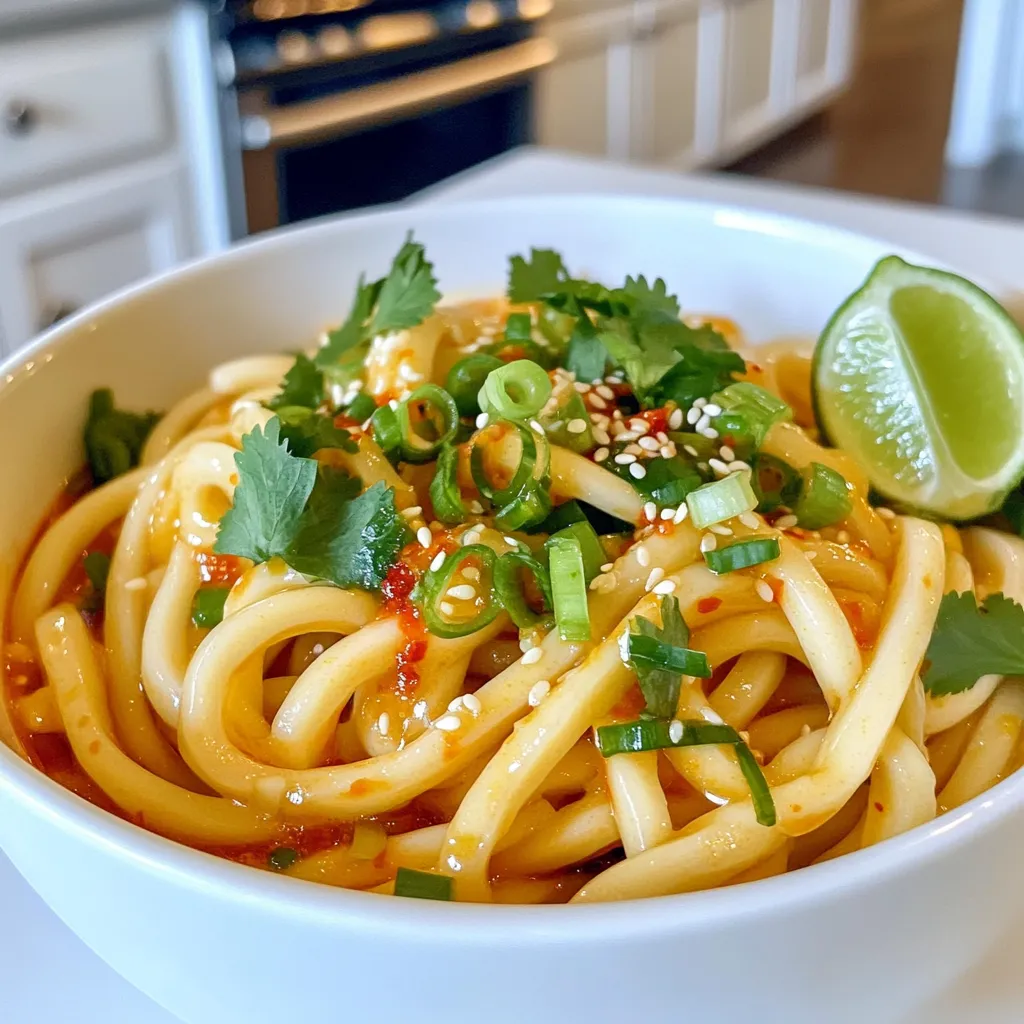 These ingredients work together to create a bold and tasty meal. Udon noodles are thick and chewy, which makes them perfect for soaking up flavors. Garlic adds a strong, savory taste, and the red chili brings heat.