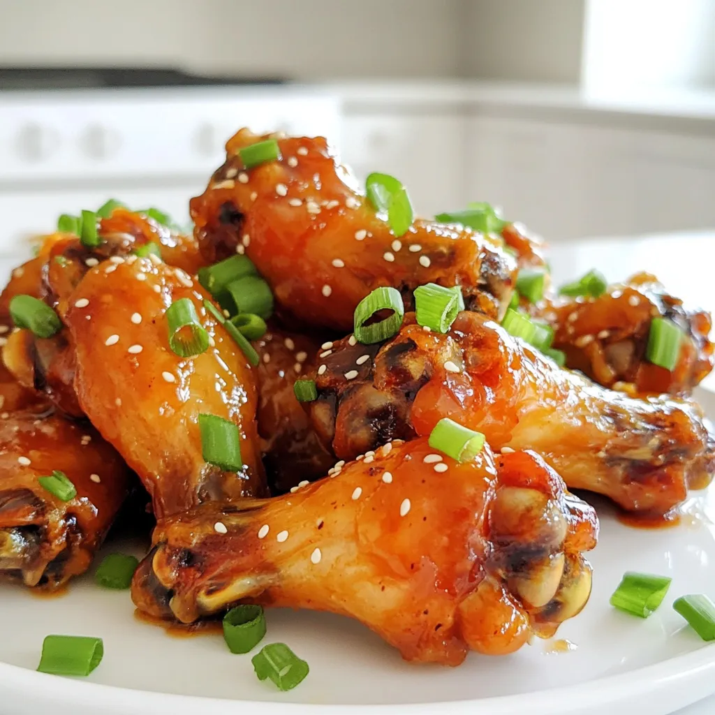 - 2 lbs chicken wings - 1/4 cup honey - 1/4 cup soy sauce - 3 cloves garlic, minced - 1 tablespoon sriracha (adjust for spice level) - 1 teaspoon ginger, grated - 1 tablespoon sesame oil - 1 tablespoon cornstarch - Salt and pepper to taste To make spicy honey garlic wings, start with fresh chicken wings. They should be about 2 pounds. The wings give a great texture and flavor. Next, you’ll need honey for sweetness. A quarter cup works well. The soy sauce adds a rich umami flavor. Again, use a quarter cup. For spice, garlic is a must. I use three cloves, minced. If you like it hot, add sriracha. One tablespoon gives a good kick, but adjust to your taste. Grated ginger adds a nice zing. Just one teaspoon is enough for a fresh flavor. You also need sesame oil for richness. One tablespoon is perfect here. Cornstarch helps to make the wings extra crispy. You will use one tablespoon of that too. Finally, season with salt and pepper to enhance all the flavors. This simple list of ingredients creates a bold and tasty dish. Don't skip any, as they all play a key role in bringing your wings to life! - First, pat the chicken wings dry with paper towels. - Next, season them lightly with salt and pepper. - In a bowl, mix together: - 1/4 cup honey - 1/4 cup soy sauce - 3 cloves minced garlic - 1 tablespoon sriracha - 1 teaspoon grated ginger - 1 tablespoon sesame oil - 1 tablespoon cornstarch - Whisk everything until it is smooth. - Toss the wings in the marinade. Make sure they are coated evenly. - Cover the bowl and refrigerate for at least 30 minutes. For best flavor, marinate overnight. - Preheat the air fryer to 375°F (190°C). This takes about 5 minutes. - Place the marinated wings in a single layer in the basket. Cook in batches if needed. - Air fry the wings for 25-30 minutes. Shake the basket halfway through for even cooking. - After cooking, toss the wings in the remaining marinade in a clean bowl to glaze them. - For a final crisp, return the wings to the air fryer for an extra 3-5 minutes. - Serve and enjoy! Garnish with sesame seeds and chopped green onions. To get that perfect crisp on your wings, set your air fryer to 375°F (190°C). This temperature is key. Make sure to preheat your air fryer for about 5 minutes. It helps cook the wings evenly. Cook your wings in batches if you have a lot. This prevents them from overcrowding, which can lead to soggy skin. You can adjust the spice level easily. If you like it hot, add more sriracha. If you prefer it milder, use less. You can also add other flavors to the marinade. Try a splash of lime juice or a bit of smoked paprika for a unique twist. Garnishing makes your wings look extra special. Use sesame seeds for a nice crunch and visual appeal. Fresh herbs like chopped green onions add color and flavor. Don't skip this step; it elevates your dish! {{image_2}} You can swap chicken wings for other meats. Try chicken thighs for a juicier bite. Turkey wings also work well and offer a unique flavor. If you want something different, go for pork ribs. They absorb the marinade nicely and get crispy in the air fryer. To change the sweetness, adjust the honey. Use maple syrup for a rich taste. If you like a sweeter kick, add brown sugar to the marinade. For more heat, mix in jalapeños or cayenne pepper. This will give your wings a real spicy punch. Plating is important for a great presentation. Stack wings high on a large plate for a fun look. You can also use a wooden board for a rustic feel. Pair your wings with fresh veggie sticks, like carrots and celery. A side of ranch or blue cheese dip makes a tasty addition. To store leftovers, let the wings cool first. Place them in an airtight container. Keep them in the fridge for up to three days. Make sure to label the container with the date. This helps you remember when you made them. The best way to reheat wings is in the air fryer. Preheat the air fryer to 375°F (190°C). Place the wings in a single layer. Heat them for about 5 to 7 minutes. This will keep them crispy and delicious. You can also check if they are hot enough by cutting one open. If you want to freeze marinated wings, do it before cooking. Place the wings and marinade in a freezer bag. Remove as much air as you can from the bag. Seal it tightly and label it with the date. You can freeze them for up to three months. When ready to cook, thaw them in the fridge overnight before air frying. This keeps the flavor strong and the wings juicy. Cook wings in an air fryer for 25-30 minutes. This time gives you crispy wings. Make sure to shake the basket halfway through cooking. This helps them cook evenly. If your wings are larger, add a few extra minutes. Always check that they reach an internal temperature of 165°F. Yes, you can use frozen wings. Start by cooking them for 30-35 minutes at 375°F. There is no need to thaw them first. Just add a few extra minutes to the cooking time. Check for doneness to make sure they are fully cooked. This method works well if you are in a hurry. If you need a substitute for honey, try maple syrup or agave nectar. Both provide sweetness but have different flavors. Maple syrup adds a rich taste, while agave is milder. You can also use brown sugar mixed with water for a thicker glaze. Adjust the amount based on your taste preference. We covered how to make delicious air fryer chicken wings. We explored key ingredients like honey, soy sauce, and various spices. The steps were clear, from preparing and marinating to cooking for the perfect crisp. Remember, you can adjust the flavors and try different proteins. These wings are easy to store and reheat, keeping them tasty. Enjoy experimenting with variations and garnishes. Your next meal will surely impress!