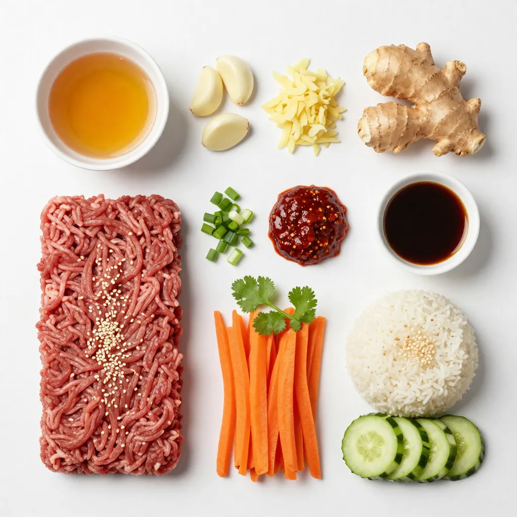 These ingredients create a rich and savory flavor in the dish. The ground beef gives it a hearty base. Garlic and ginger add aroma and warmth. Gochujang brings the heat and depth, while brown sugar balances the spice.