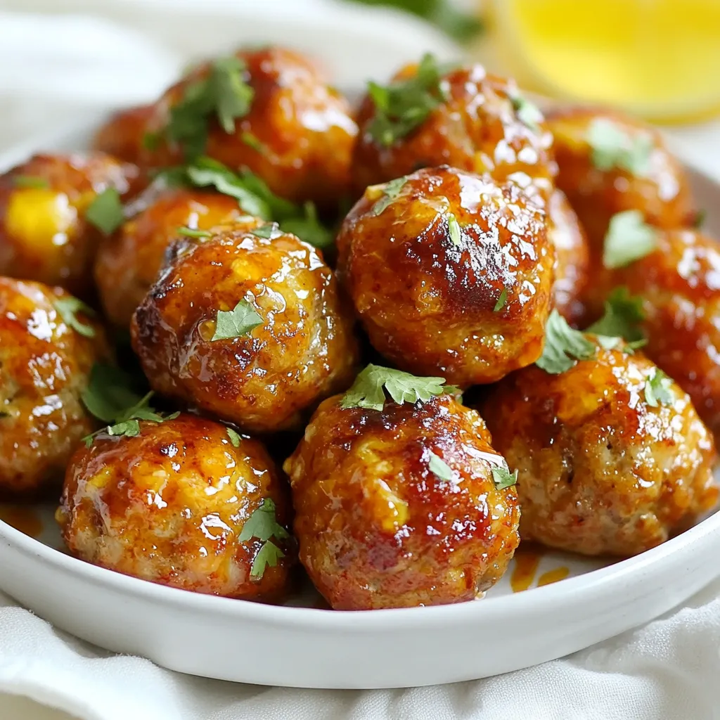 - 1 pound ground turkey - 1/4 cup breadcrumbs - 1/4 cup grated Parmesan cheese - 1/4 cup chopped fresh cilantro - 1 large egg - 3 tablespoons Sriracha sauce (adjust for spice preference) - 2 cloves garlic, minced - 1 teaspoon ginger, grated - 1 teaspoon soy sauce (or tamari for gluten-free) - Salt and pepper to taste - 2 tablespoons olive oil (for cooking) These ingredients work together to create tasty meatballs. Ground turkey is lean and cooks nicely. Breadcrumbs add texture, while Parmesan gives a savory kick. Fresh cilantro brightens the flavor. The egg helps bind everything together. Sriracha sauce adds the spicy twist, and garlic and ginger bring depth. Soy sauce adds umami, while salt and pepper enhance the taste. Finally, olive oil keeps the meatballs moist during cooking. Feel free to adjust the Sriracha based on your spice preference. If you like it hot, use more Sriracha. If you prefer mild, use less. This flexibility makes the dish perfect for anyone. Enjoy experimenting with these ingredients to make a dish that fits your taste! {{ingredient_image_1}} In a large mixing bowl, combine the ground turkey, breadcrumbs, grated Parmesan cheese, and chopped cilantro. You want all the flavors to blend well. Next, add one large egg, two tablespoons of Sriracha sauce, minced garlic, grated ginger, soy sauce, and a little salt and pepper. Mix the ingredients gently with your hands. Be careful not to squeeze too hard. This helps keep the meatballs tender and juicy. If you overmix, they can become tough. To shape the meatballs, wet your hands with water. This makes it easier to roll the mixture without sticking. Aim for meatballs that are about 1 to 1.5 inches in size. This size cooks well and is easy to eat. Place each meatball on a parchment-lined baking sheet. First, preheat your oven to 400°F (200°C). This ensures even cooking. Once the oven is ready, drizzle olive oil over the meatballs. This adds moisture and helps them brown nicely. Bake the meatballs for 20-25 minutes. They are done when they are cooked through and browned on the outside. For an extra kick, mix the remaining Sriracha with one tablespoon of olive oil. Brush this glaze on the meatballs during the last 5 minutes of baking. After baking, let the meatballs rest for a few minutes. This helps the flavors settle before serving. To change the heat level, adjust the Sriracha in your mix. Start with 1 tablespoon of Sriracha for mild meatballs. You can add more if you like it hot. For a spicy glaze, mix 2 tablespoons of Sriracha with 1 tablespoon olive oil. Brush this on your meatballs in the last few minutes of cooking. This adds a flavorful kick and a shiny finish. To keep your meatballs tender, do not overmix the ingredients. When you combine the turkey and spices, mix gently. Overmixing can make them tough. Check the cooking time carefully. Bake them for 20-25 minutes until they are brown and cooked through. You can use a meat thermometer to check for doneness. The inside should reach 165°F (74°C). These meatballs pair well with many sides. Try serving them on skewers with a fresh cucumber salad. They also taste great on a bed of rice. Sprinkle sesame seeds and add more cilantro for a nice touch. For garnishing, you can drizzle some extra Sriracha or a squeeze of lime juice. This adds a bright flavor and makes your dish look great. Pro Tips Use Lean Turkey: Opt for lean ground turkey to keep the meatballs moist while reducing excess fat for a healthier option. Chill the Mixture: Chilling the meatball mixture for 30 minutes before shaping helps the meatballs hold their shape during cooking. Customize the Heat: Adjust the amount of Sriracha based on your spice preference; you can also try adding diced jalapeños for extra kick. Serving Suggestions: These meatballs pair beautifully with a side of sweet chili sauce or a zesty yogurt dip for added flavor. {{image_2}} You can swap turkey for chicken or beef. This change offers a new flavor and texture. Chicken gives a lighter taste, while beef adds richness. Both options work well with Sriracha's heat. For gluten-free options, use gluten-free breadcrumbs. These breadcrumbs mimic regular ones. They will keep your meatballs tender and flavorful. You can also use crushed rice cereal as an alternative. Consider adding herbs and spices to boost flavor. Fresh parsley or basil adds brightness. You can also try smoked paprika for a smoky kick. Experiment with your favorite spices to find what you love. Adding vegetables can enhance texture and nutrition. Finely chopped bell peppers or onions mix well. Carrots or zucchini also work great. They add moisture and flavor to the meatballs. You can pan-fry or bake meatballs. Pan-frying gives a crispy outside, while baking is healthier. If you choose to bake, preheat your oven to 400°F. This ensures even cooking and a nice brown color. For a slow cooker option, cook meatballs on low for 6-8 hours. This method keeps them juicy and tender. Add a sauce to the slow cooker for extra flavor. To keep your spicy Sriracha turkey meatballs fresh, store them in an airtight container. Place parchment paper between layers if you stack them. This keeps them from sticking together. In the refrigerator, they last about three to four days. Always check for any off smells before using them. Want to save some for later? You can freeze these meatballs! First, let them cool completely. Then, place them in a single layer on a baking sheet. Once frozen, transfer them to a freezer bag. They can stay good for up to three months. To enjoy later, thaw them overnight in the fridge. Reheat in the oven at 350°F until warm. These meatballs are perfect for meal prep! You can add them to salads, wraps, or bowls. Portion them out for quick lunches or dinners. Pair them with rice or veggies for balanced meals. This makes it easy to stick to healthy eating while enjoying great flavors. You can make meatballs without breadcrumbs by using these substitutes: - Cooked rice - O